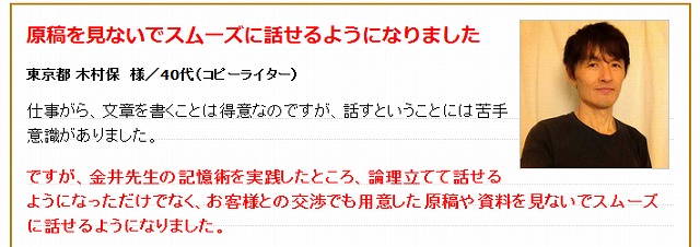 金井式スピーチ瞬間記憶術セミナーDVDでは、特に